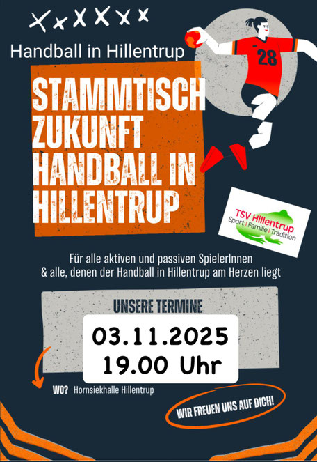 Am 03.11.2025 um 19.00 Uhr findet wieder der Handballstammtisch in Hornsiekhalle statt.
